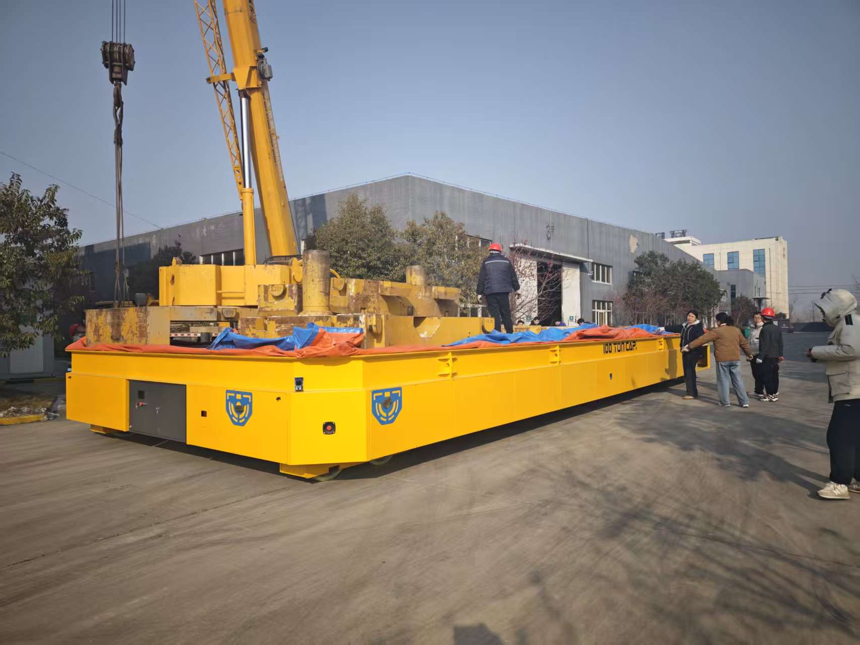 100噸無軌平車完成專業砝碼載重測試并獲成功。設備搭載專屬重載驅動與轉向系統,滿載100噸時依舊實現靈活轉向、平穩行駛,核心承重與傳動部件經極限考驗表現優異,無軌設計突破場地限制,為重型制造業超大噸位物料高效、安全轉運提供硬核裝備支撐。